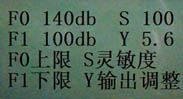 图1-2 分贝式测量屏显示 3、当用户按下 其中F0表示百分比形式时的最大值,即当磨里的料位大于满料位的XXXdb时灯光报警。最大可设置为140db,最小为100db。 F1表示百分比形式时的最小值,即当磨里的料位小于满料的XXXdb时灯光报警。最大可设置为140db,最小为100db。 S表示灵敏度,其作用是可以根据不同的磨的现实情况调整 图1-5 设置屏界面显示 使之测量值,最大可设置为999 Y为输出调整,一般由厂家标定,用户不可轻易调整。 在设置界面中,按 当全部设置完成后,按